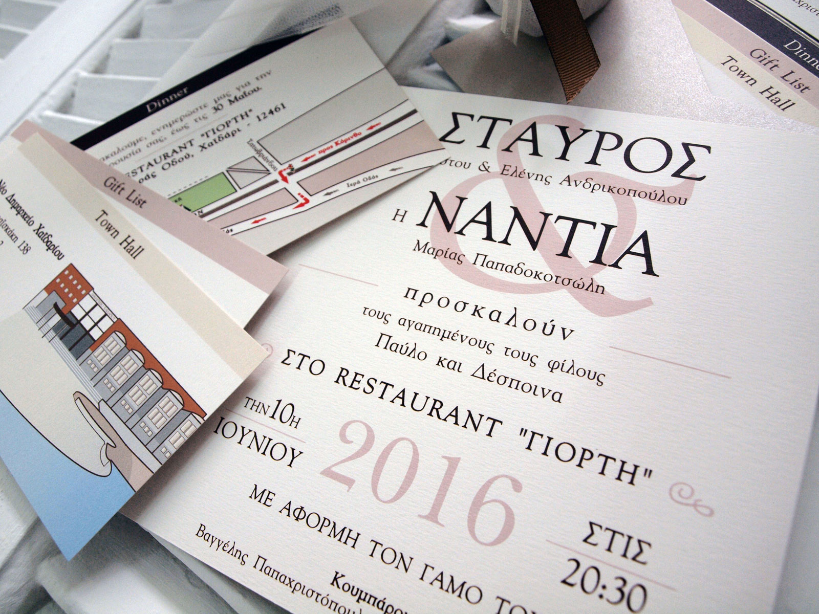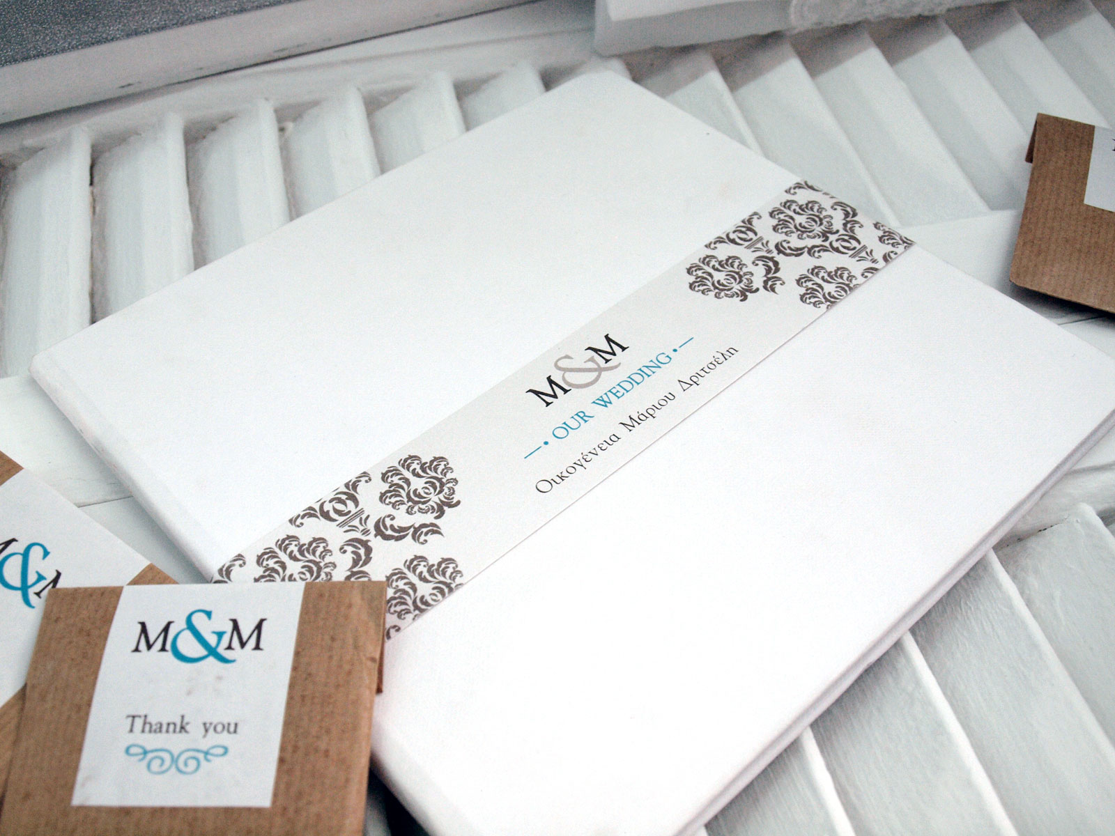 We produce wedding and baptism invitations according to the shape and style you prefer. In our office you may see samples and invitations we already have printed, special papers and applications for invitations and we can discuss all design details and choices.